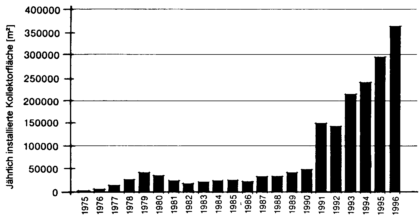 Abbildung 5.1.2 zeigt die jährlich installierte Kollektorfläche von 1975 bis 1996:[4]