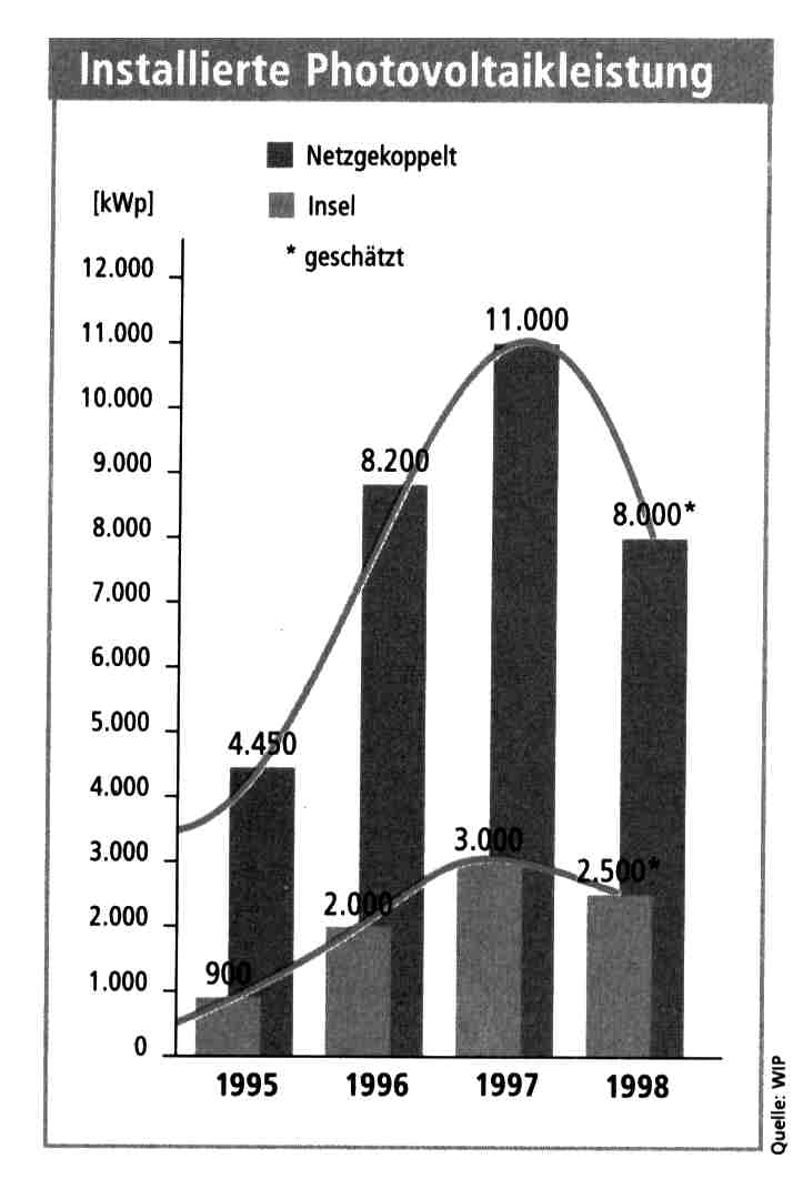 Abb. 5.1.1 zeigt die Installierte Photovoltaikleistung von 1995 bis 1998:[1]