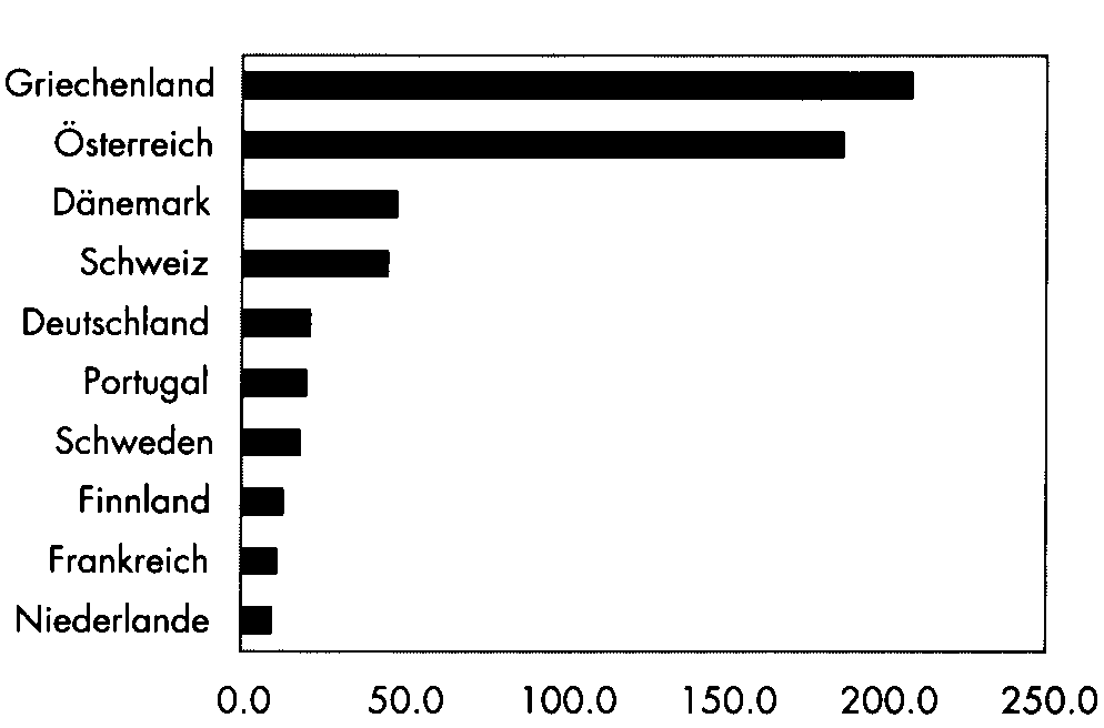 Abbildung 7.3.1 zeigt die installierte Kollektorfläche pro tausend Einwohner in Europa:[3]